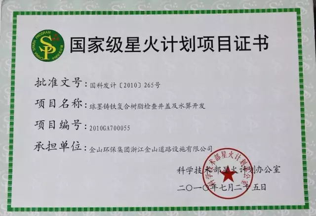 公司先后通過了ISO9001國際質(zhì)量體系認(rèn)證、ISO14001國際環(huán)境管理體系認(rèn)證、GB/T28001-2011職業(yè)健康安全管理體系認(rèn)證。擁有自主知識產(chǎn)權(quán)和十多項(xiàng)專利技術(shù)。同時(shí)也是國家城鎮(zhèn)建設(shè)CJ/T327-2010《球墨鑄鐵復(fù)合樹脂檢查井蓋》和CJ/T328-2010《球墨鑄鐵復(fù)合樹脂水箅》兩項(xiàng)行業(yè)標(biāo)準(zhǔn)的主編單位,國家標(biāo)準(zhǔn)15S501-3圖集唯一參編單位,2012年應(yīng)邀與石化系統(tǒng)專家一起編制并完成石油化工行業(yè)通用圖集SHT109-2013《球墨鑄鐵復(fù)合樹脂明溝蓋板及井蓋板》。企業(yè)被授予國家高新技術(shù)企業(yè)、浙江省環(huán)保示范企業(yè)、浙江省2011年度成長之星企業(yè)、國家星火計(jì)劃落實(shí)企業(yè)、浙江省科技型企業(yè)等多項(xiàng)榮譽(yù)稱號。